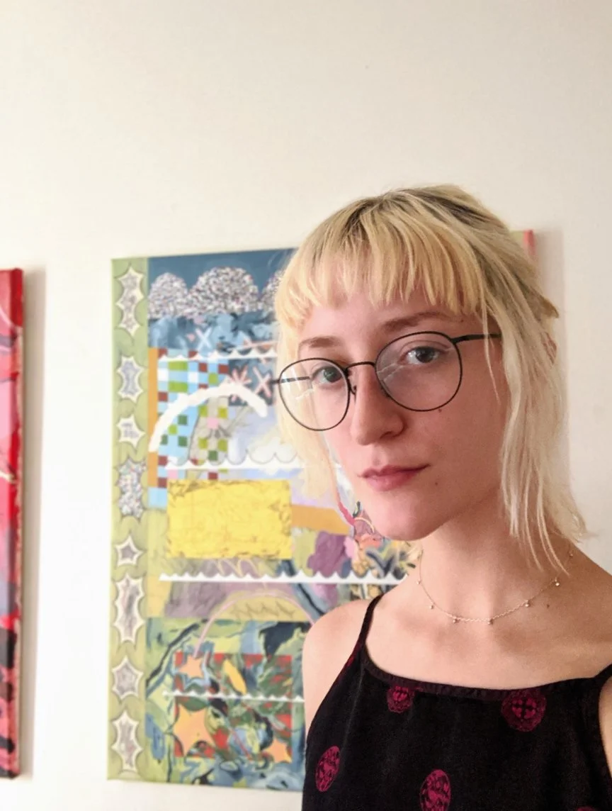 Crudgington's background in printmaking informs an improvisational and layered approach to painting. Through the use of techniques that are common, though not specific to, printmaking–including masking and stencils–Crudgington reveals and obfuscates imagery through an entirely additive process with the intention of building unexpected and interesting connections.